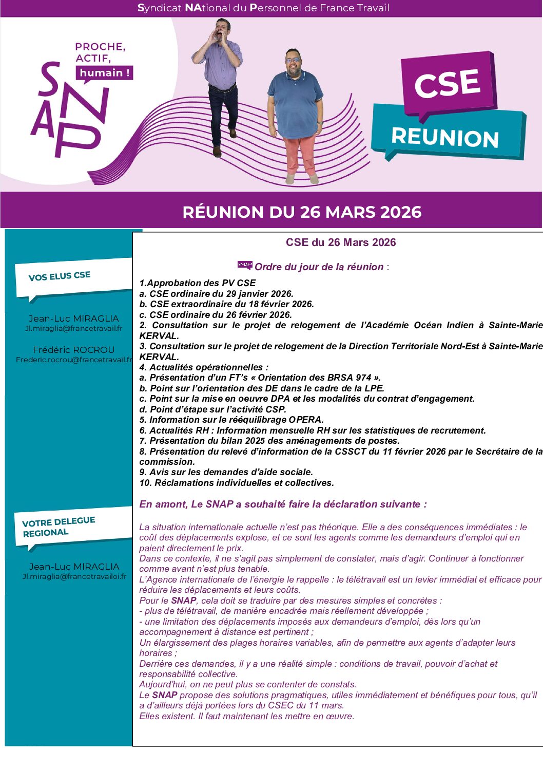 Le SNAP vous informe sur le CSE qui s’est tenu le 26 mars 2026.