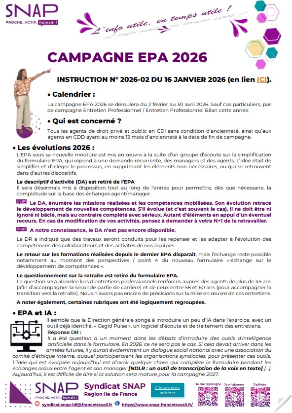 Veuillez trouver ci-contre une communication sur la campagne EPA 2026.