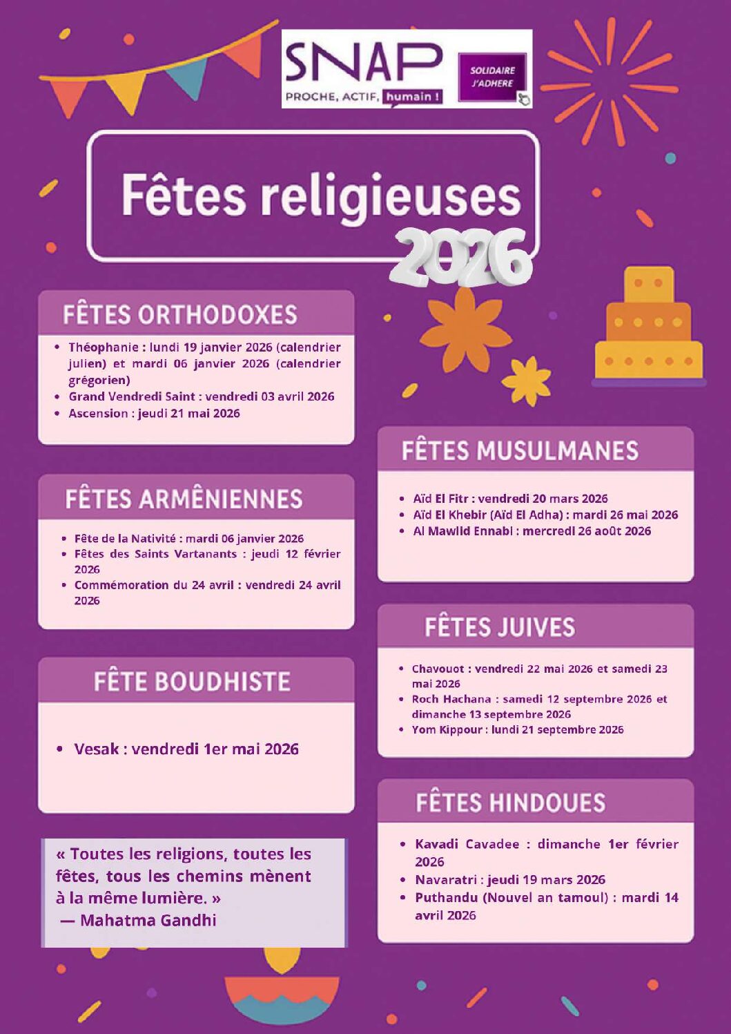 Vous trouverez ci-joint une communication du SNAP sur les fêtes religieuses 2026.